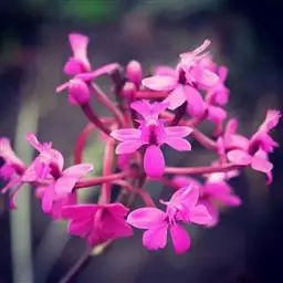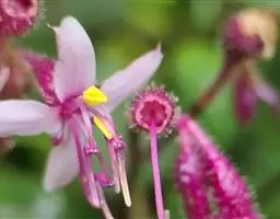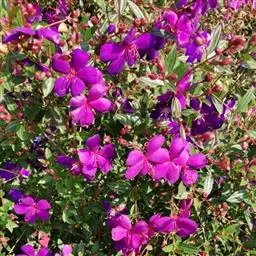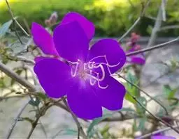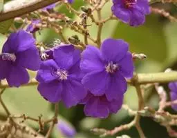 伞形花序或聚伞花序,或由聚伞花序组成的圆锥花序,顶生,总梗长1-5.5厘米,花梗长0.8-2厘米;花萼钟状漏斗形,管长5-7毫米,裂片线状披针形至狭三角形,长4-5毫米,两面均被毛;花瓣紫色或紫红色,卵形至广卵形,顶端渐尖,有时顶尖具1腺毛,微偏斜,仅外面上部及边缘被微柔毛,长10-14毫米,宽6-8毫米,雄蕊等长,长1.6-1.8厘米,花药披针形,通常作近90度的膝曲,长9-11毫米,药隔膨大,下延,前后连成盘状;子房卵形,顶端具膜质冠,冠缘具啮蚀状细齿。