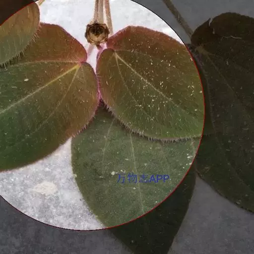 叶片坚纸质,心形、椭圆状心形至卵状心形,顶端短渐尖或钝急尖,基部圆形至心形,长(4.5-)7-10(-13.5)厘米,宽 (3-)5-5.5(-10)厘米,边缘具细重齿牙及缘毛和短柔毛,基出脉7-9,近边缘的两条不甚明显,两面被疏长柔毛及柔毛,背面以脉上较多,叶面仅中脉微凹,背面基出脉及侧脉隆起或微隆起;叶柄长2.5-5厘米。