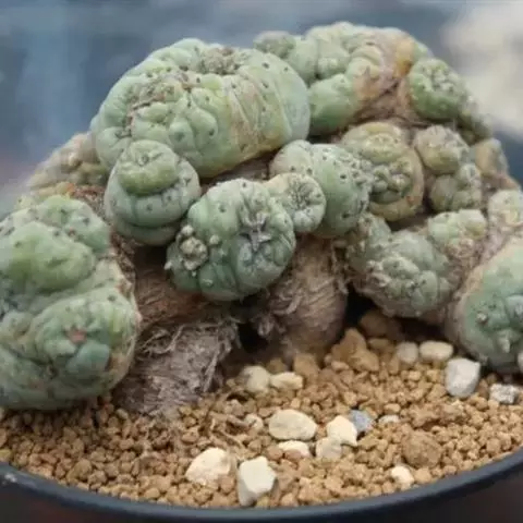 三角牡丹是仙人掌科岩牡丹属植物。原产墨西哥,濒危种。长三角形疣突暗绿色,疣背呈很明显的龙骨凸。秋天…