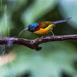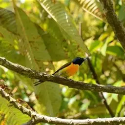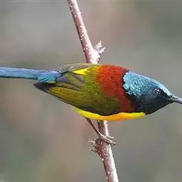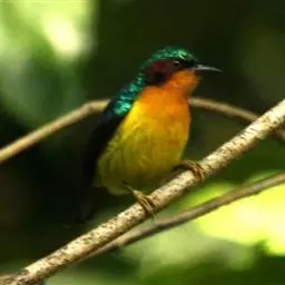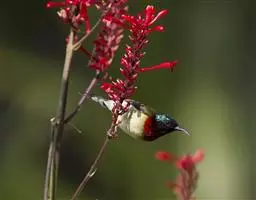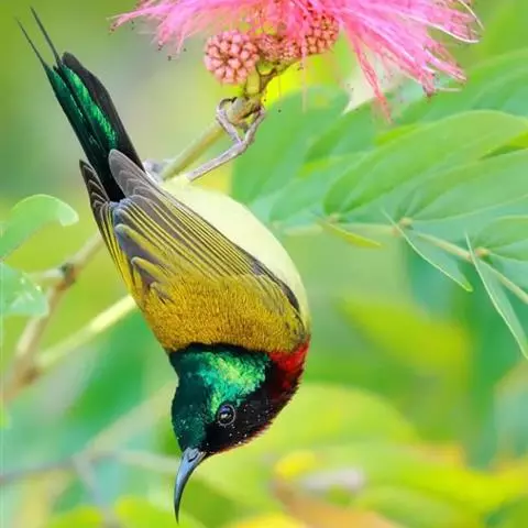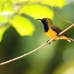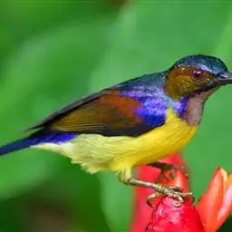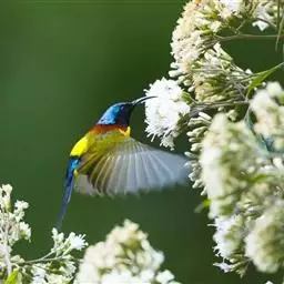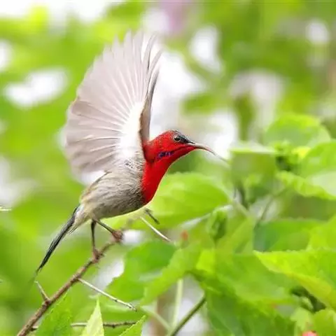火尾太阳鸟小巧玲珑,羽毛鲜艳美丽,活鸟可供观赏,羽毛供装饰,也可作羽毛画。
