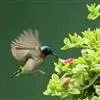 不甚罕见的垂直迁移的候鸟,常结集成小群活动。鸣叫时展翅跷尾。喜用细长的嘴在各种花朵中吮吸花蜜和啄食花蕊、花叶。剖检8月和11月采自云南的11只鸟胃,胃内容物除花蕊外,还有花叶,种籽和鞘翅目昆虫等。叫声为轻声颤音shweet,鸣声为单调的dzidzi-dzidzidzidzi声。