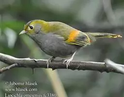 雌鸟上体灰绿或橄榄黄绿色,背部较鲜亮,腰和尾上覆羽缀有黄色,两翅与雄鸟同色。中央尾羽棕褐色,不特性延长,其上隐现暗色横斑,外侧尾羽内翈黑褐色,外翈羽缘棕褐色,羽端淡色。颏、喉、胸灰绿色,其余下体黄绿色。
