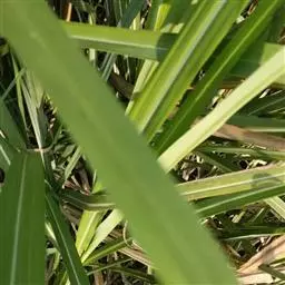 叶鞘无毛,长于或上部者稍短于其节间;叶舌短,长0.5-1毫米,具纤毛;叶片扁平,宽线形,长20-50厘米,宽5-18毫米,除上面基部密生柔毛外两面无毛,边缘锯齿状粗糙,基部常收缩成柄,顶端长渐尖,中脉白色,粗壮。
