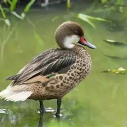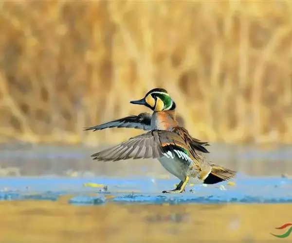 花脸鸭(学名:Anas formosa)属小型鸭类,个体较绿翅鸭稍大,而较针尾鸭稍小。体长37-44厘米,体重0.5千克左右。雄鸭繁殖羽极为艳丽,特别是脸部由黄、绿、黑、白等多种色彩组成的花斑状极为醒目。胸侧和尾基两侧各有一条垂直白带,可以明显区别于其他野鸭。非繁殖羽似雌鸟。花脸鸭是一种喜欢集群的鸭类,特别是冬季常集成大群,也常和别的鸭混群。白天常成小群或与其他野鸭混群游泳或漂浮于开阔的水面休息,夜晚则成群飞往附近田野、沟渠或湖边浅水处寻食。主要以轮叶藻、柳叶藻、菱角、水草等各类水生植物的芽、嫩叶、果实和种子为食。繁殖于整个东西伯利亚地区,西到俄罗斯安加拉河,北到北极海岸,南到贝加尔湖,东到堪察加半岛。越冬日本南部,偶尔到印度东北部地区。