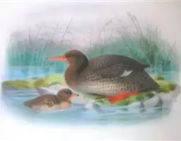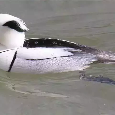 红胸秋沙鸭属中等食鱼鸭类,体长53厘米。嘴细长而带钩,捕食鱼类。丝质冠羽长而尖。雄鸟黑白色,两侧多…