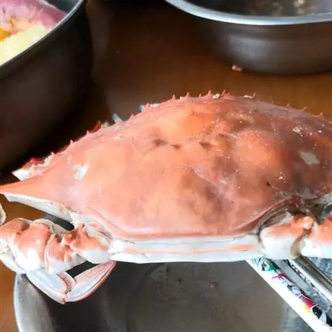 1、买来活螃蟹,用一根筷子从螃蟹的尾部靠近蟹壳的中间位置插入,一直插到头,然后左右晃动两下,取出筷子,2分钟左右即可。