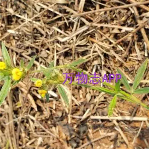 荚果具1荚节,卵形,长2-3毫米,宽1.8毫米,无毛或近顶端被短柔毛,喙很小,长0.1-0.5毫米,内弯;种子灰褐色,扁椭圆形,近种脐具喙或尖头,长2.2毫米,宽1.5毫米。
