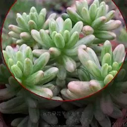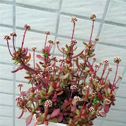 红数珠是景天科青锁龙属植物,叶片对生,叶片长圆型,叶片肥厚。叶片表面有不规则凸起的白色颗粒,…