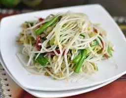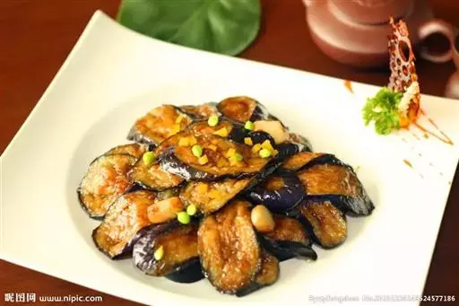 【用法】茄子洗净切成4份,浸泡在水中去除异味,捞出沥水,将油锅烧至八成热时,放人茄子,炒去水分备用。猪肉切成丝浇上酱油淀粉,大蒜捣泥,将锅烧热放人大蒜炒至渗出香味,放人猪肉、葱、茄子等翻炒至熟,加少许醋和味精,即可出锅,佐餐。