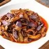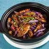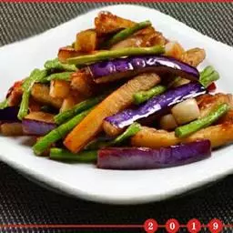 辅料:豆腐干30克,冬笋25克,香菜3克 素烧茄子