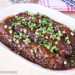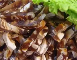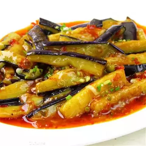 原料: 茄子500克、花生油500克(实耗40克)、酱油25克、味精2克、精盐3克,水淀粉10克、葱、姜蒜各少许。