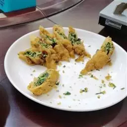 4.就是这个样子,或者还可以黄些。但里面已经很软了,因为有面糊,所以茄子不会烂掉.
