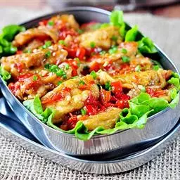 特 点: 茄子软烂,味道香美。 制作关键: 茄子切块后,放在太阳光下先晾晒1~2小时,这样炸时省油。炸茄子要用旺火热油炸,炸时要勤翻动,以免炸糊,但也不要未炸上色就捞出。