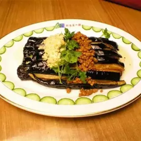 【配方】茄子5个,猪肉70克,酱油10克。