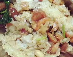 2)、炒锅置中火上,放入油3汤匙烧热,下葱末、姜末炒香,放入茄子块和泡好的海米,约炒2分钟后,加入酱油、盐、糖和泡海米的水炒匀,转用小火焖烧10分钟后即可