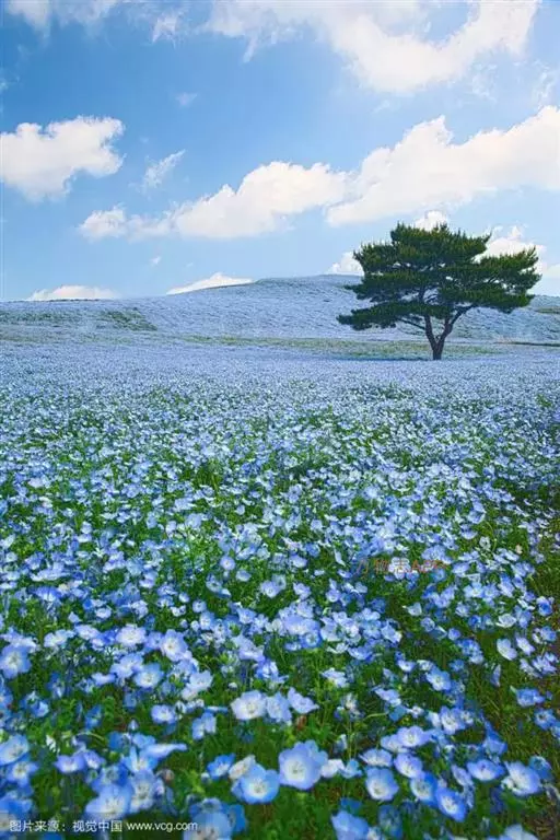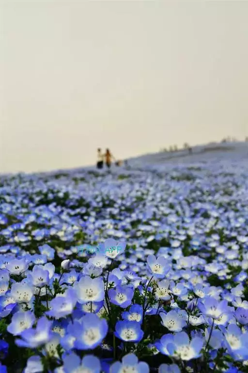 喜林草,Nemophila menziesii,是加利福尼亚一种通常野花。花色有红、黄、橙黄和蓝、白相间,亦有带紫色斑点者。