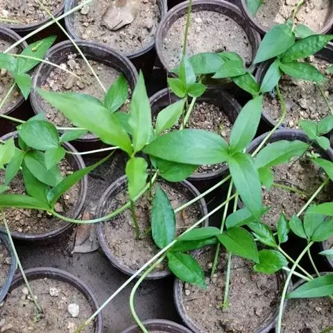 滴水珠的炼苗与移栽:当试管苗长出健壮根后,将培养苗拿出培养室,打开培养盖,炼苗2-3天后取出小苗,洗去附着在苗上的培养基,将其移栽到沙子中。