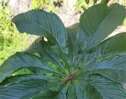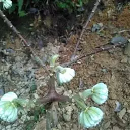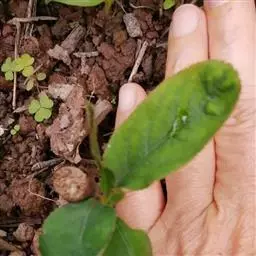 养护:滴水珠种苗定值后每年6月份在垄上施洒一层30厘米厚的混合肥料,混合肥料由腐殖土、豆秸粉、草木灰、蛋壳粉按2:0.5:1:0.1的重量比混合制成,施洒完成后浇足水;每年雨期及时做好排水措施,夏季和秋季非雨期时每隔5天浇一次水,每隔2天在叶面喷施一次叶面水,冬季和春季非雨雪期每隔7天浇一次水,定时除草,除虫害;滴水珠种苗定值2年后即可采收。
