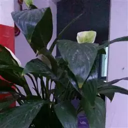 花序柄短于叶柄,长3.7-18厘米。佛焰苞绿色,淡黄带紫色或青紫色,长3-7厘米,管部长1.2-2厘米,粗4-7毫米,不明显过渡为檐部;檐部椭圆形,长1.8-4.5厘米,钝或锐尖,直立或稍下弯,人为展平宽1.2-3厘米。肉穗花序:雌花序1-1.2厘米,雄花序长5-7毫米;附属器青绿色,长6.5-20厘米,渐狭为线形,略成之字形上升。花期3-6月,果8-9月成熟。