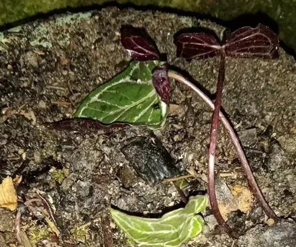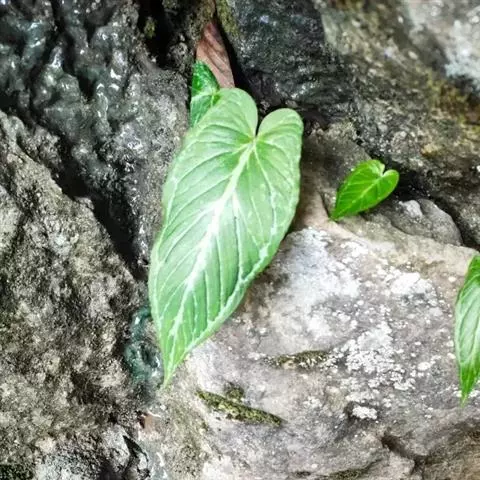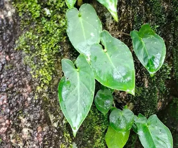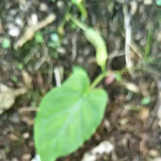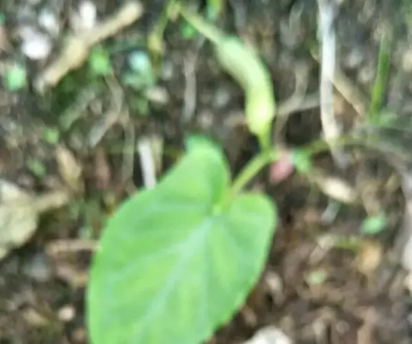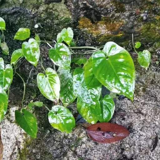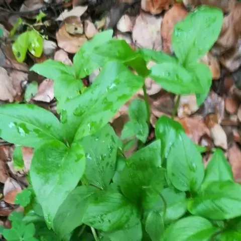 滴水珠(学名:Pinellia cordata N. E. Brown)是天南星科半夏属植物。块茎球形、卵球形至长圆形,长2-4厘米,粗1-1.8厘米,表面密生多数须根。叶1,叶柄长12-25厘米。幼株叶片心状长圆形,长4厘米,宽2厘米。花序柄短于叶柄,长3.7-18厘米。佛焰苞绿色,淡黄带紫色或青紫色。花期3-6月,果8-9月成熟。