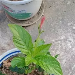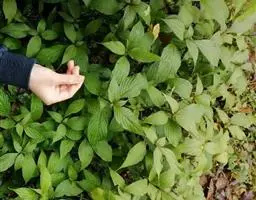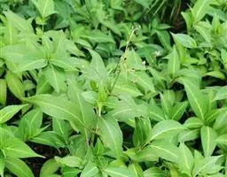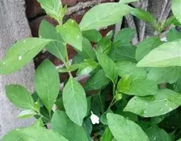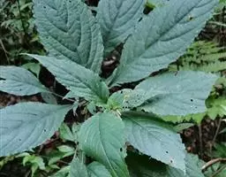 植株高2~3米,分枝多,枝条较柔 软。幼茎四棱形,绿色至深褐色。叶具短柄,对生,卵形至椭圆状,长4~5厘米,宽3.5~4厘米,先端渐尖,纸质,腹面深绿色,背面灰绿色,全缘。