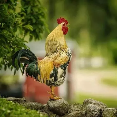 贵妃鸡成年公鸡“三冠”特征十分明显,头顶的V型冠体外加下巴两侧硕大鲜红的肉坠,合称“三冠”。