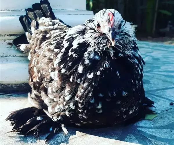 母鸡头部的羽毛格外茂盛,犹如欧洲贵妇使用的羽毛帽,相当尊贵华丽,使得贵妃鸡不虚此名。