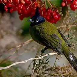 黑冠黄鹎:体长18-21厘米,是一种中等体型偏黄色鹎。整个头、颈、颏、喉黑色,头顶有显著直立的羽冠,…