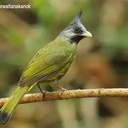 凤头雀嘴鹎:属小型鸟类,体长18-22厘米。嘴粗短、呈象牙色或乳黄色,前额和脸灰色,头顶黑色,…