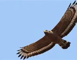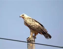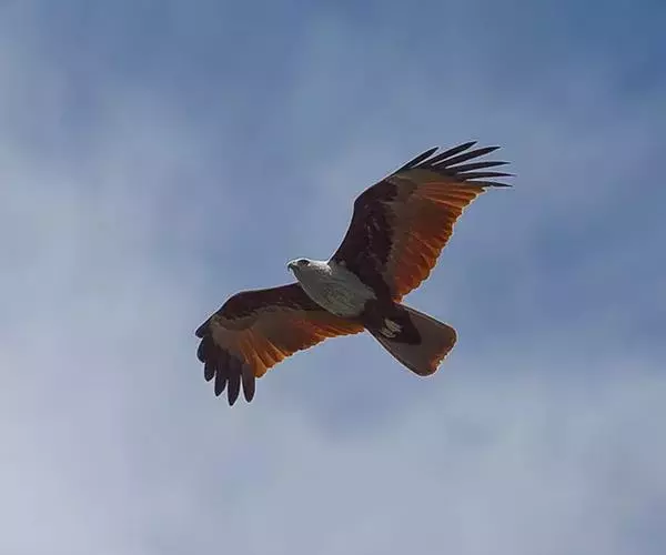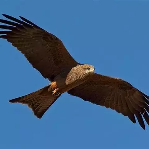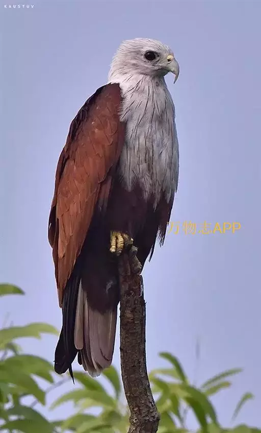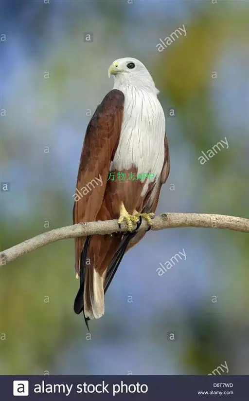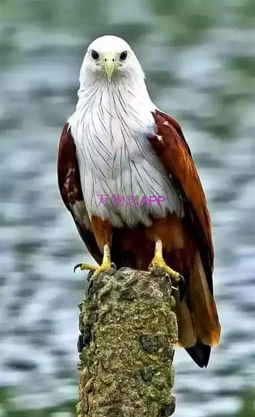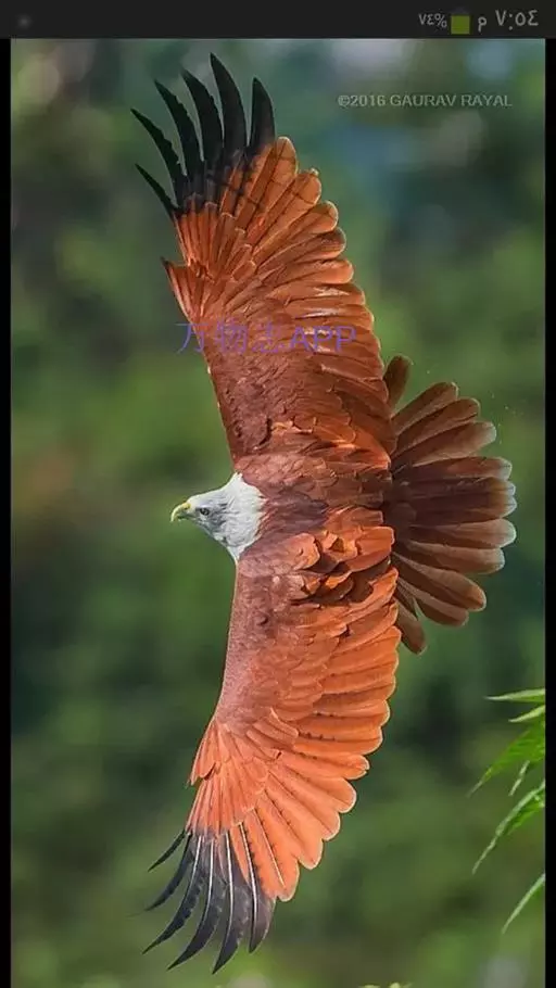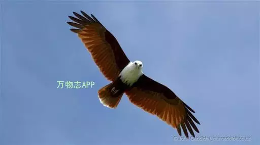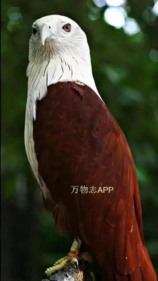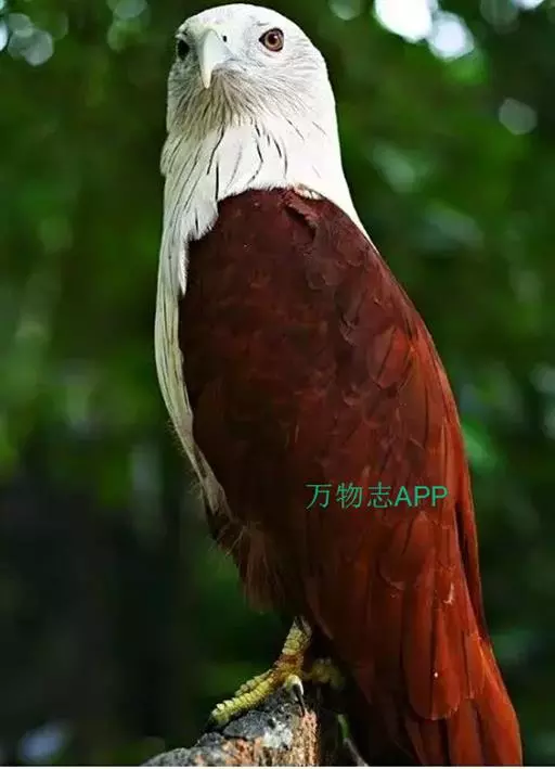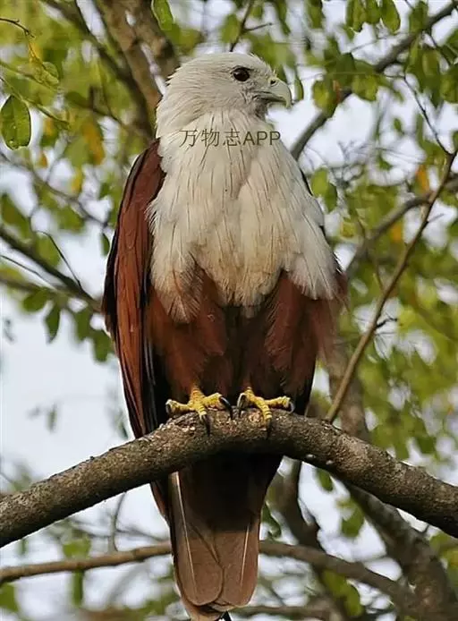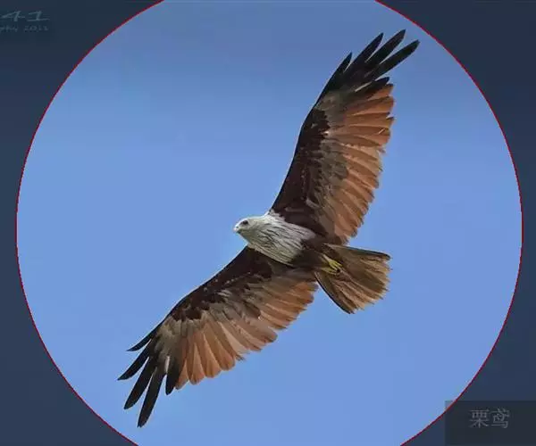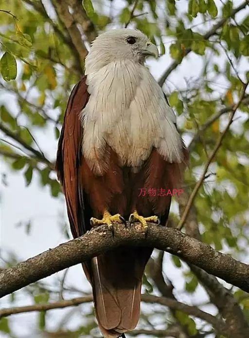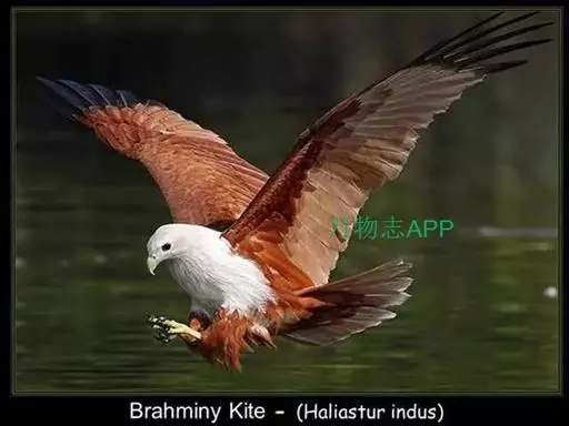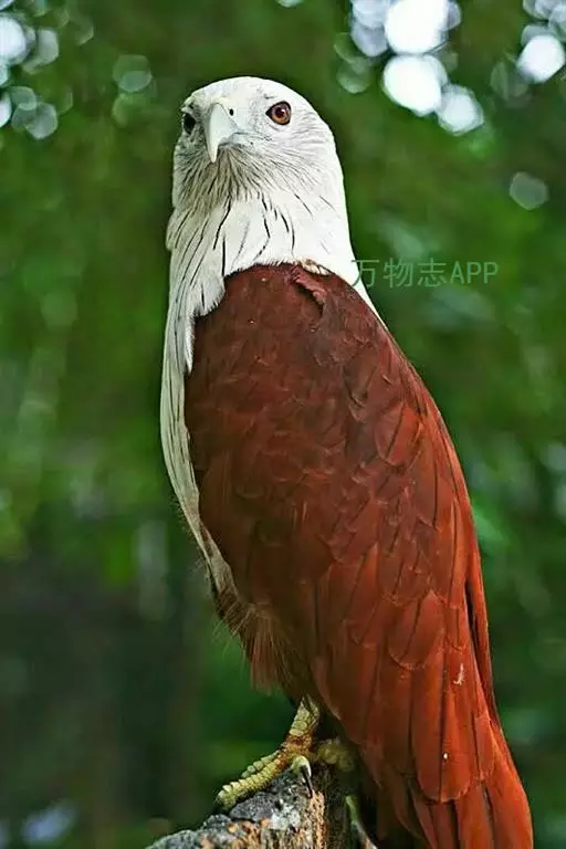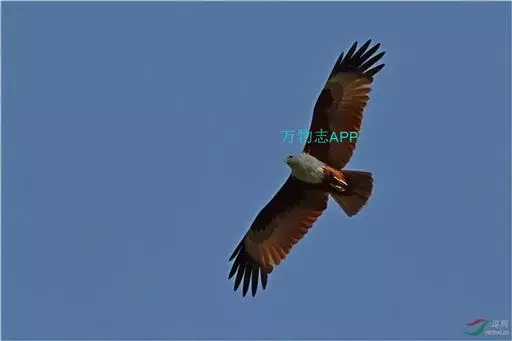 栗鸢(学名:Haliastur indus):又叫红老鹰,为中型猛禽。体长36-51厘米。虹膜为褐色或红褐色,头、颈、胸和上背白色,其余体羽和翅膀均为栗色。主要栖息于江河、湖泊、水塘、沼泽、沿海海岸和邻近的城镇与村庄。除繁殖期成对和成家族群外,通常单独活动。活动在白天。常单独在湖滨、海滨、河岸或水域与村庄上空长时间地翱翔和滑翔。主要以蟹、蛙、鱼等为食,也吃昆虫、虾和爬行类,偶尔也吃小鸟和啮齿类。