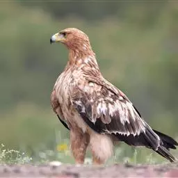 白肩雕:又名御雕,是大型猛禽。体长73-84厘米。体羽黑褐色,头和颈较淡,肩部有明显的白斑,在黑褐…