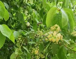 核果近球形或卵球形,直径约,毫米,黑褐色,无毛;果梗无毛;萼片宿存。花期4-5月,果期5-10月。