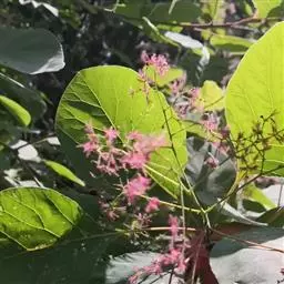 花几无毛,雄花长约7毫米,雌花长约6毫米。萼在雄花中长2.5毫米,明显浅裂,在雌花中长3.5-4毫米,浅裂或近截平;花瓣在雌花中长约8毫米。雄蕊6,无毛(仅雄花花药有两排刚毛),在雄花中近1/2、在雌花中1/2以上合生。花盘杯状,高0.5-1毫米,流苏状,边缘及内侧有刚毛,雄花中的肉质,中央有一凹穴;雌花中的薄,边缘有6个波状浅齿。雌蕊无毛,在雄花中不存在。