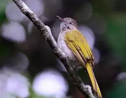 黑冠黄鹎:体长18-21厘米,是一种中等体型偏黄色鹎。整个头、颈、颏、喉黑色,头顶有显著直立的羽冠,…
