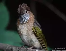 纹喉鹎:体长19厘米,是一种中等体型的偏绿色鹎。特征为头顶、脸颊、颏及喉均具黄色条纹。上体橄榄绿色。…
