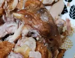 鸭边腿一只、盐、酱油、花椒粉、料酒、鸡精、葱丝、姜丝