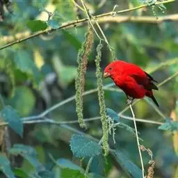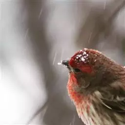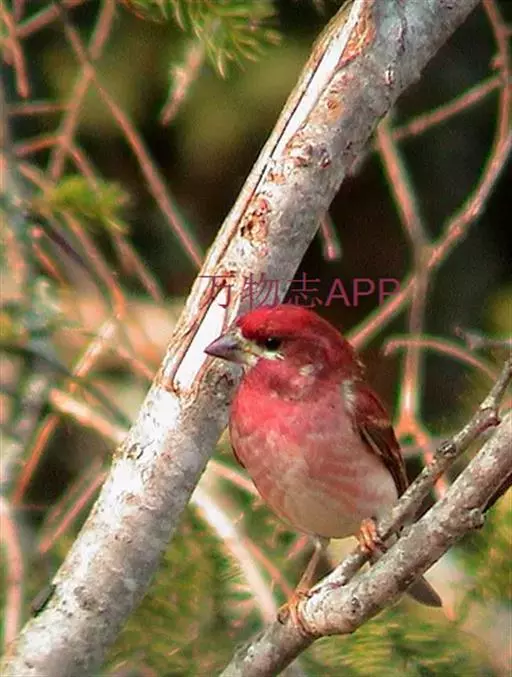 藏朱雀:全长约17-18厘米。雄鸟头部深红色具光辉,喉部暗红色具白色点斑;背部灰白色,各羽具玫瑰红…