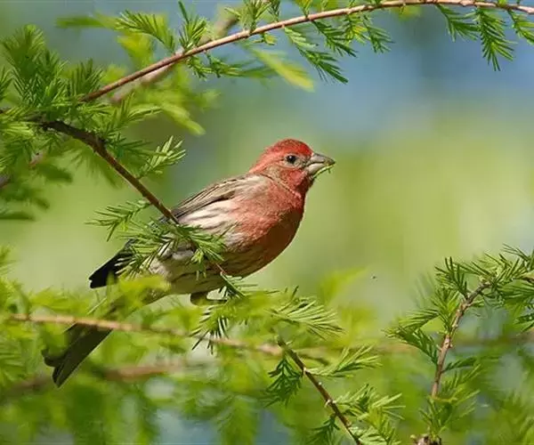酒红朱雀小型鸟类,体长13~15厘米。雄鸟通体深红色,头部深朱红或棕红色,下背和腰玫瑰红色,…