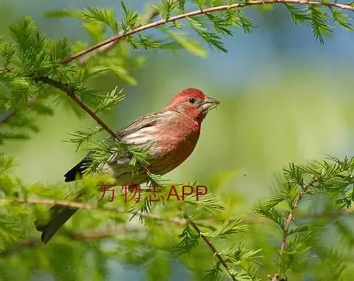 北朱雀,是燕雀科朱雀属鸟类。雄鸟额和头顶前部珠白色具窄的粉红色羽缘,…