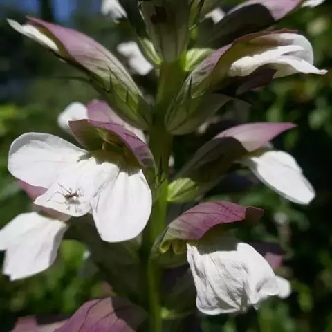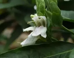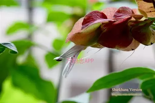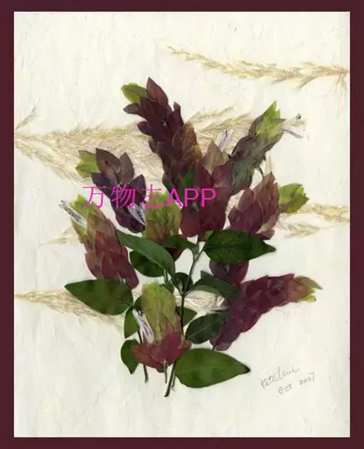 穗状花序紧密,稍弯垂,长6-9厘米;苞片砖红色,长1.2-1.8厘米,被短柔毛;萼白色,长约为冠管的1/4;花冠白色,在喉凸上有红色斑点,长3.2厘米,伸出苞片之外,冠檐深裂至中部,被短柔毛。蒴果未见。