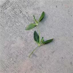 多分枝的草本,高20-50厘米;茎圆柱状,被短硬毛。叶卵形,长2.5-6厘米,顶端短渐尖,基部渐狭而成细柄,全缘,两面被短硬毛。