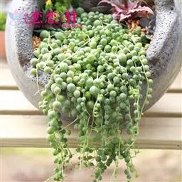 翡翠珠用小盆悬吊栽培,极富情趣,一粒粒圆润、肥厚的叶片,似一串串风铃在风中摇曳,是家庭悬吊栽 翡翠珠 培的理想花卉。可用小盆栽植,放于案头、几架,也可做悬垂栽植,如下垂的宝石项链、晶莹可爱。因其茎蔓纤细匍匐生长,缀着光滑圆珠状肉质叶,形似桃,大小如豌豆,色碧绿如翡翠,悬垂在花盆四周。将翡翠珠栽植于小盆中置于几案,晶莹可爱,吊挂悬垂栽培典雅别致。既装饰美化了室内环境,又调节人的心情。 此外,随着人们生活水平的提高,对室内空气质量的要求也越来越高。然而由于装修等原因,目前室内环境的有害物质达数千种之多,其中最主要、也是最常见的有:氡、放射性、甲醛、苯、氨、聚氯乙烯、氮氧化物和碳氧化物等。另外,电器使用的增多,使室内的负氧离子数量降低。而在室内养殖花卉,不仅可以美化环境、活跃气氛,还可以净化空气,排除居室有害物质。翡翠珠能有效地清除室内的二氧化硫、氯、乙醚、乙烯、一氧化碳、过氧化氮等有害物。