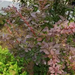 紫叶小檗是小檗科小檗属落叶灌木植物。紫叶小檗幼枝淡红带绿色,无毛,老枝暗红色具条棱;叶菱状卵形,…