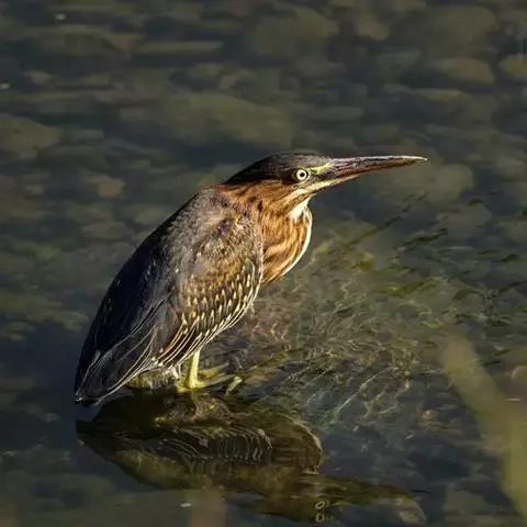 绿鹭:是鹳形目鹭科绿鹭属鸟类。体型小,头顶黑,枕冠亦黑色,上体蝉灰绿色,…