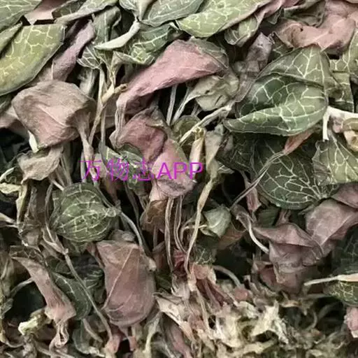 2.品种鉴别:福建金线莲:叶脉金色细密网纹,而台湾金线莲则为白色。叶面为墨绿色,滇越金线莲叶形很大,金色网脉粗大而稀疏。