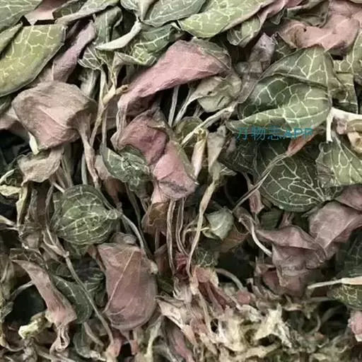 金线莲是取其叶脉象金色丝线交织成网状名为“金线”,叶基部鞘状包茎形成鞘节,质厚实挺拔似莲,故名为“莲”而得名。台湾金线莲叶脉为白色,但药材名统称为金线莲。