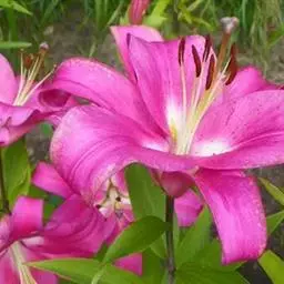 亚洲百合,百合科百合属植物。多年生草本,高30~60厘米。鳞茎卵球形。总状花序,花漏斗状,朝上开放,…