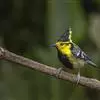 黄颊山雀是雀形目山雀科山雀属鸟类。雄鸟额、头顶和羽冠为具有光泽的黑色;额基、眼先、眉纹、脸颊和耳羽等头颈侧为鲜艳的明黄色;贯眼纹黑色;后颈亦具一黄斑;上体灰黄绿色,羽缘黑色;尾羽黑色具蓝灰色羽缘,基部白色;下体颏、喉至上胸为富有金属光泽的黑色;胸下有一黑色宽中央纵纹,一直延伸至肛周;其余下体白色;胸侧和两胁染黄色或蓝灰色;虹膜暗褐色;喙黑色;脚铅蓝灰色至铅黑色。雌鸟似雄鸟,但上体光泽较弱,胸腹部黑色纵带不明显。黄颊山雀分布于亚洲东南部地区,在中国分布于华中、华南和西南等地。栖息于中低山常绿阔叶林、针叶林和混交林中,也见于山麓疏林灌丛草坡或茶园、果园等地。常成对或小群活动,也和大山雀等其他小型鸟类混群,活跃地在乔灌木枝叶间飞翔跳跃。主食鳞翅目和鞘翅目等昆虫,兼食植物种实。繁殖期在4-6月,营巢于树洞、岩隙或墙缝中。窝卵数为3-7枚,卵灰白色且有红褐斑,雏鸟晚成。黄颊山雀被列入中国林业局200