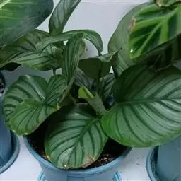 孔雀竹芋 孔雀竹芋喜湿润的环境, 在生长季节应给予充足的水分。若冬季低温休眠,则要控制浇水, 保持盆土不干燥即可,翌春抽出新叶后。再逐渐正常浇水。