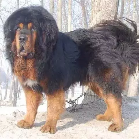 尾巴:位置高,粗,快乐地卷曲,举起过背,下垂时尖部几乎触及飞节。